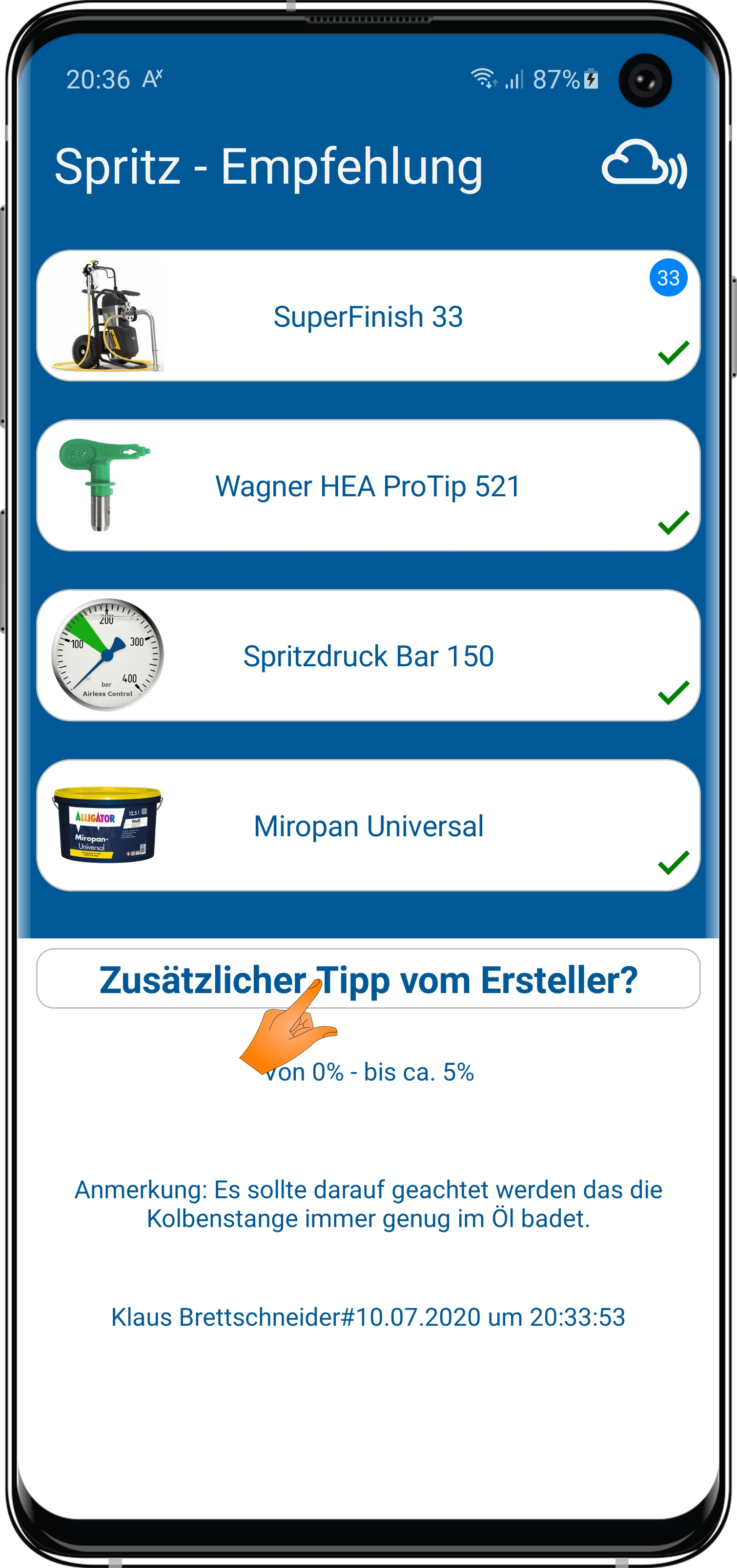 dass wenn Du auf die Produktbeschreibung tippst, Du in die Spritzempfehlung anderer App-Nutzer gelangst?