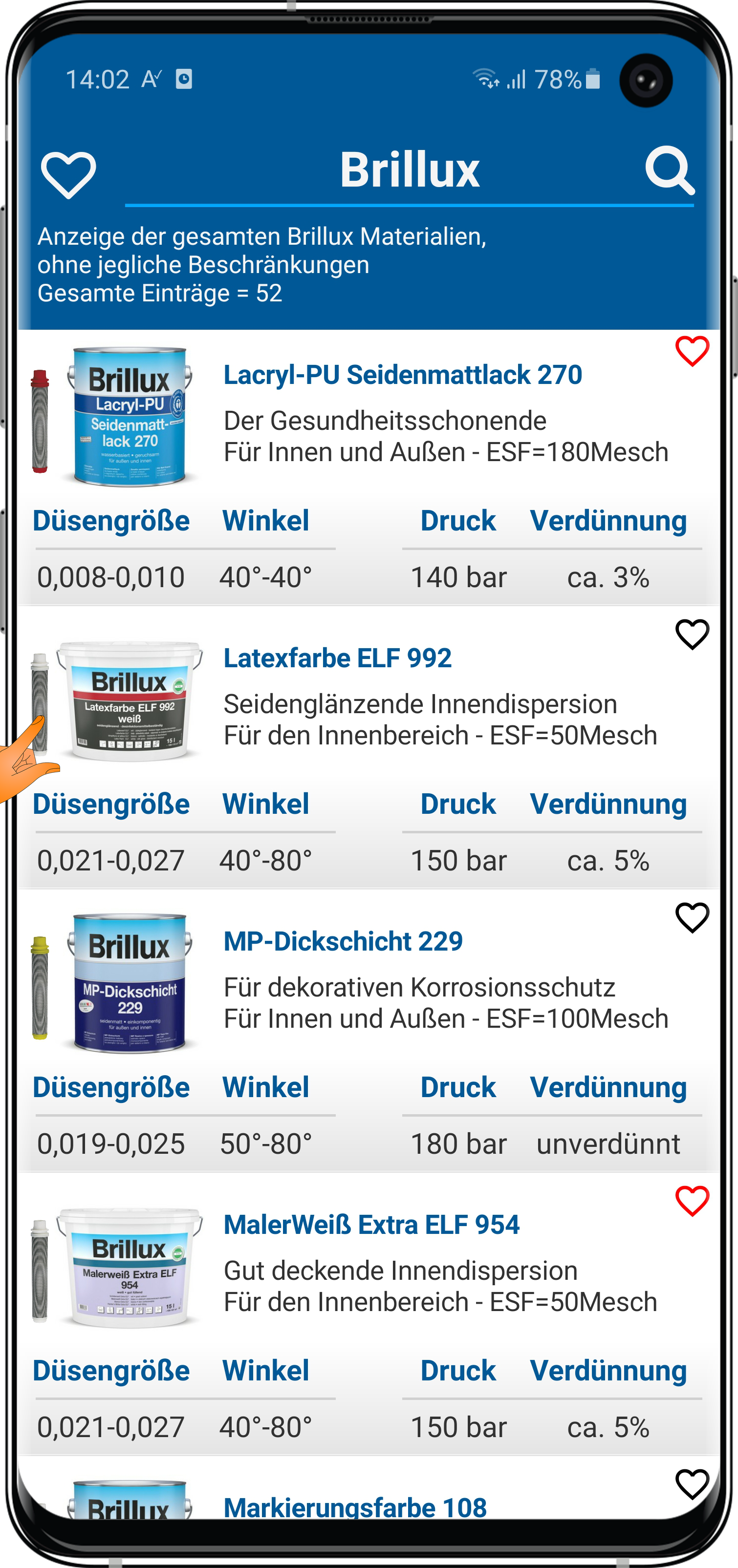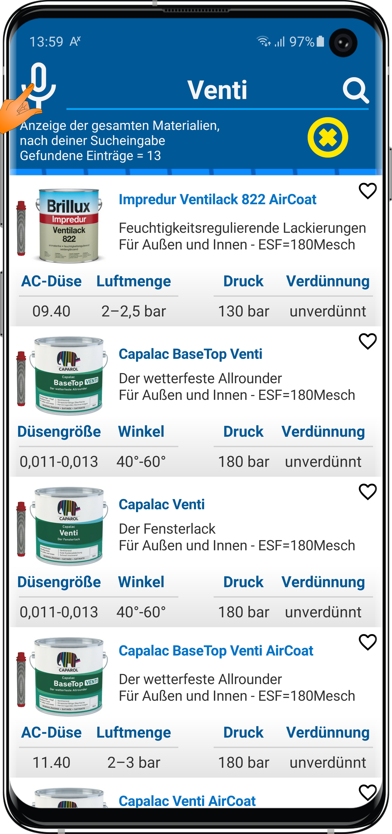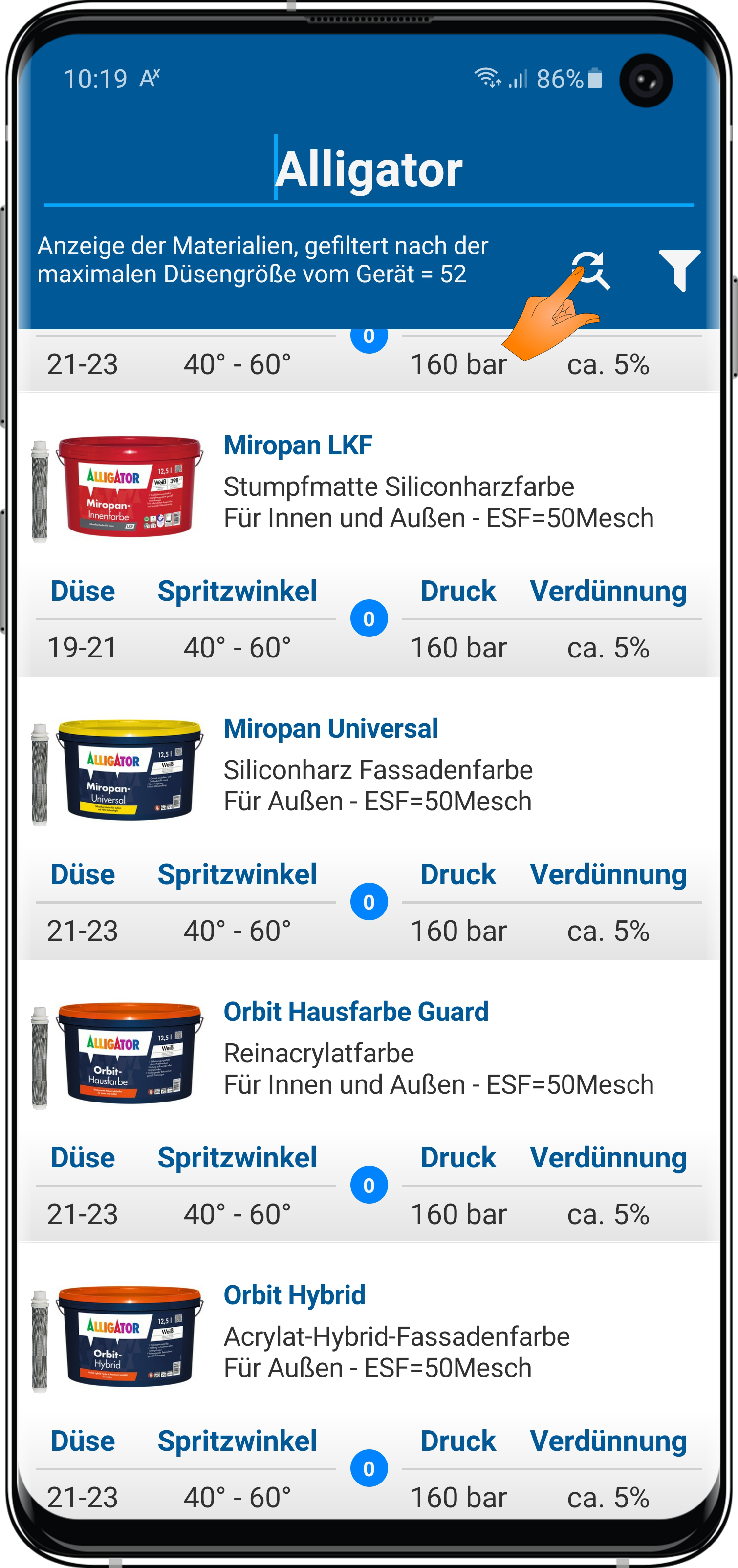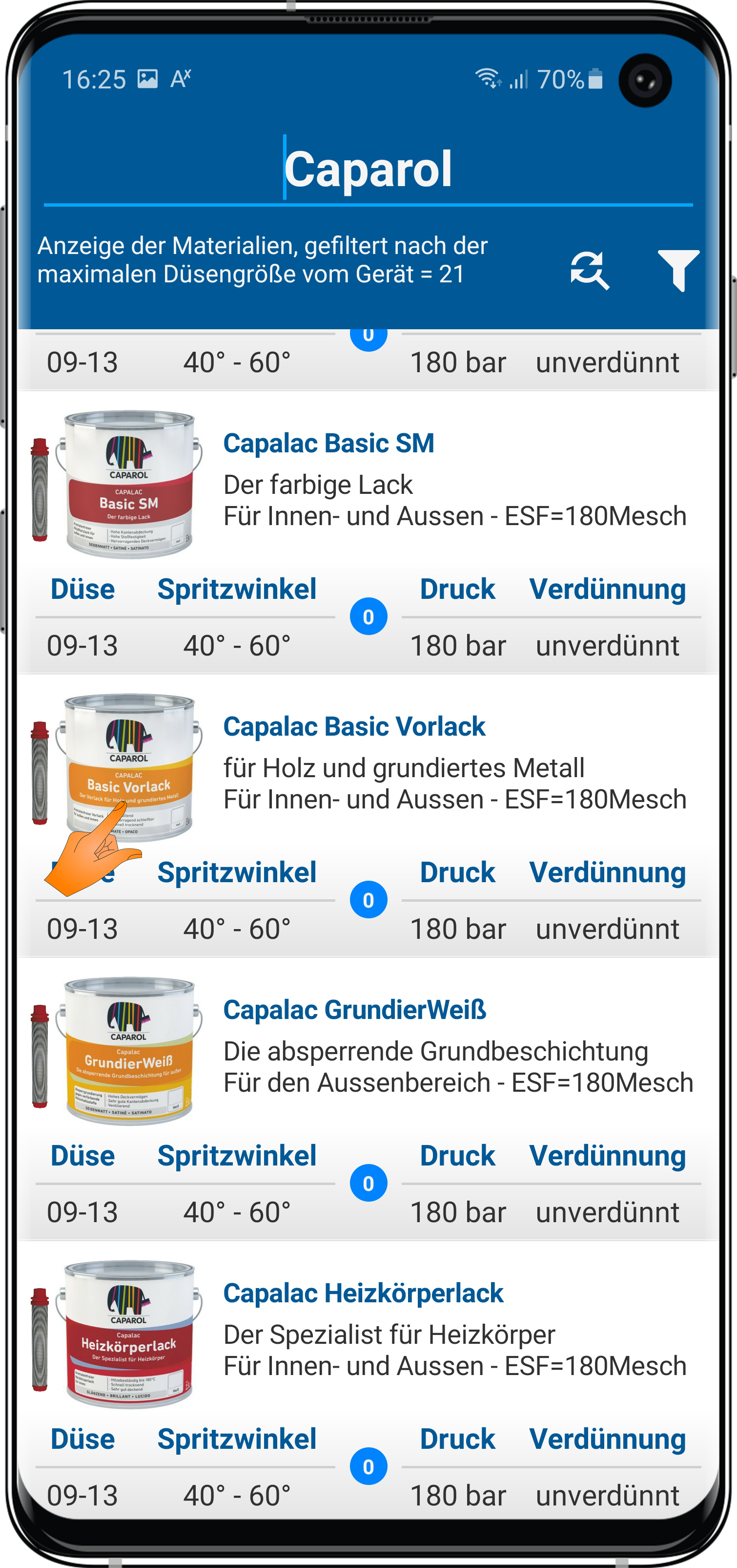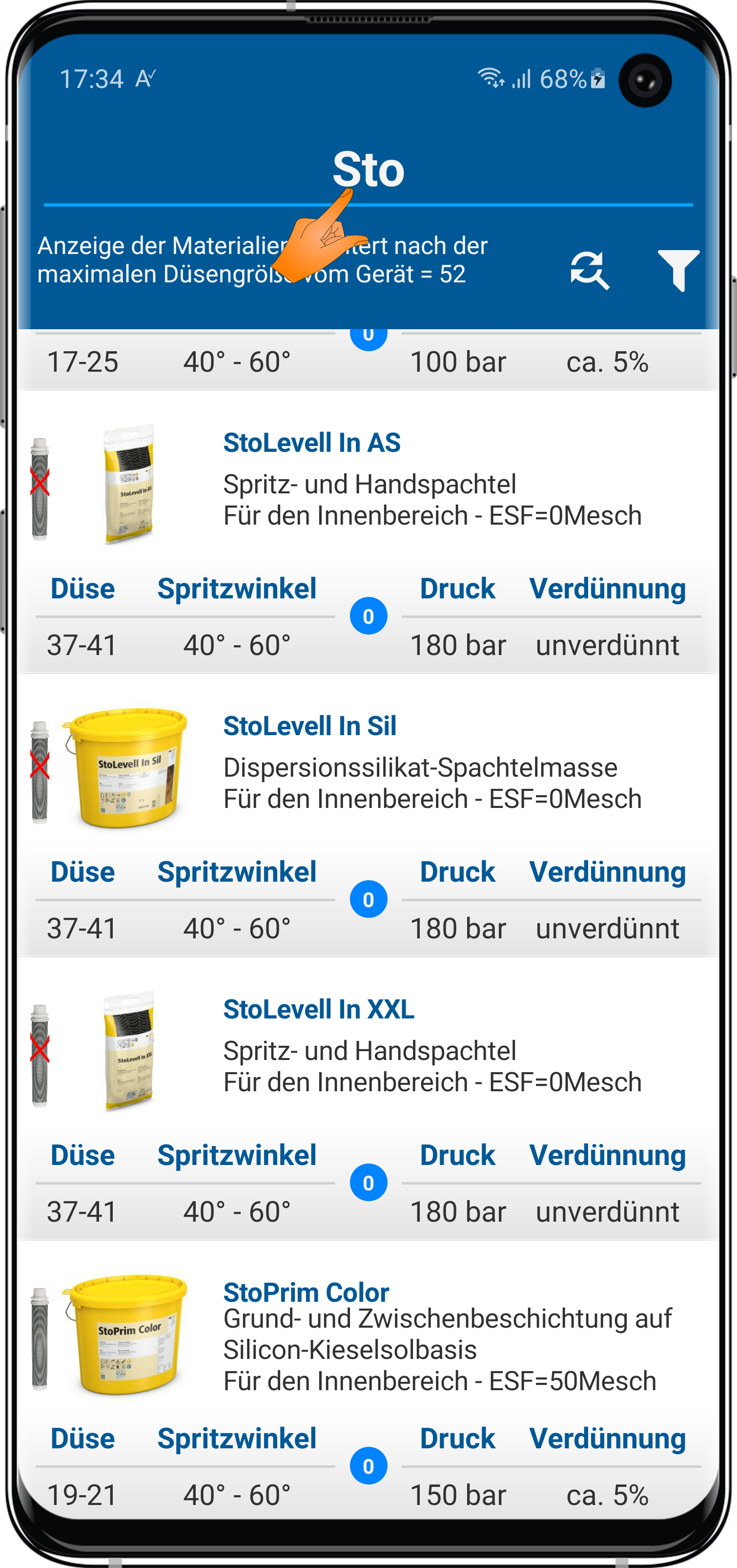 dass wenn Du oben auf das Filter-Icon tippst, Dir nur Produkte deiner max. Düsengröße angezeigt werden?